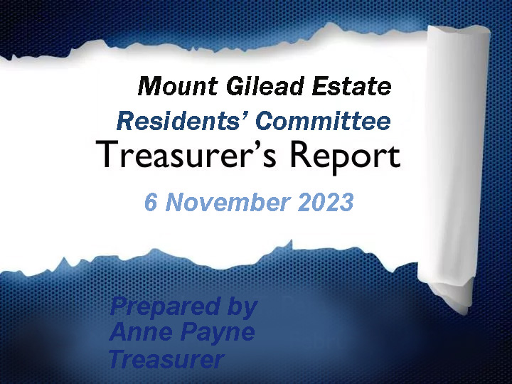 The Residents' Committee Treasurer's Report, for 6 November 2023, prepared by the Treasurer of the Residents' Committee - Anne Payne.
