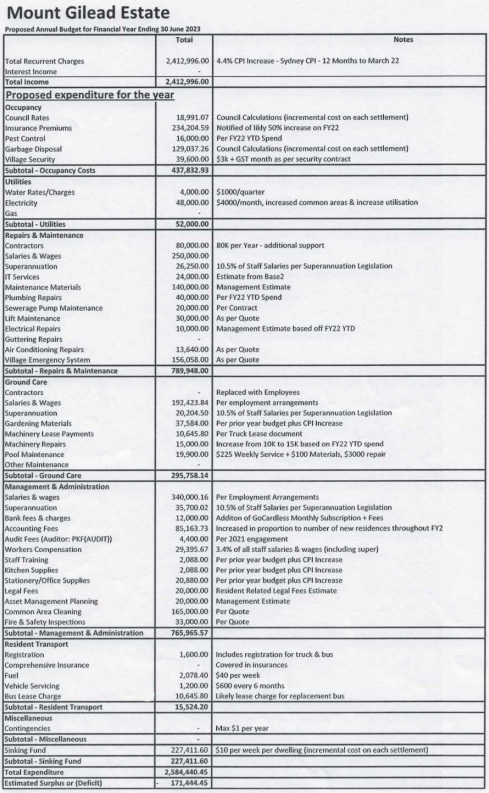 Proposed budget put forward by the Operator/Management for the year ending 30 June 2023