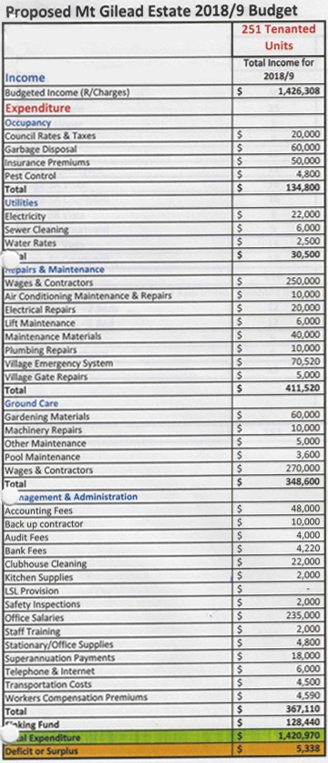 Proposed budget put forward by the Operator/Management for the year ending 30 June 2019.