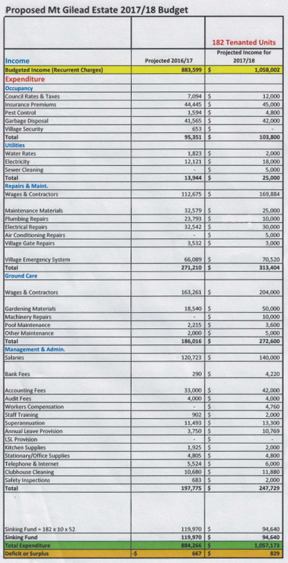 Proposed budget put forward by the Operator/Management for the year ending 30 June 2018