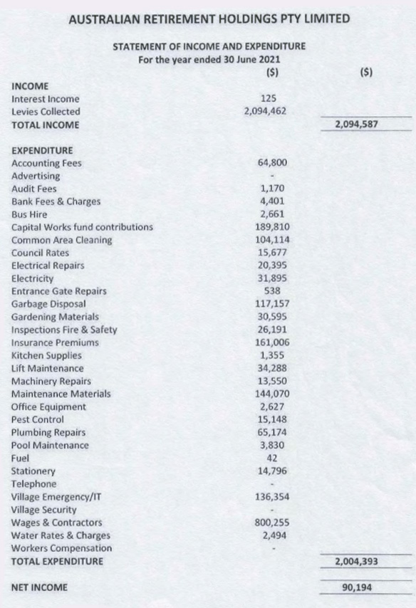 Proposed budget put forward by the Operator/Management for the year ending 30 June 2021.