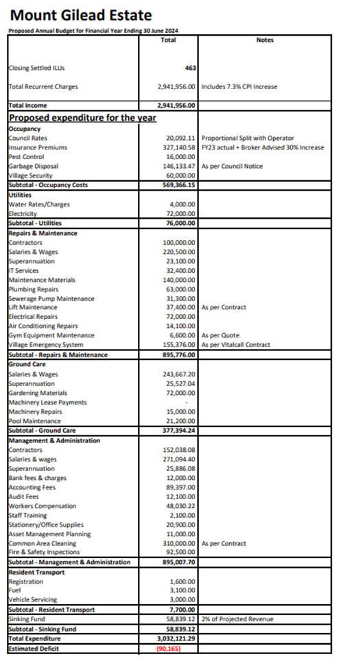 Proposed budget put forward by the Operator/Management for the year ending 30 June 2024.