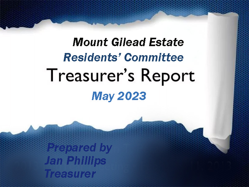The Residents' Committee Treasurer's Report, for May 2023, prepared by Jan Phillips.ride