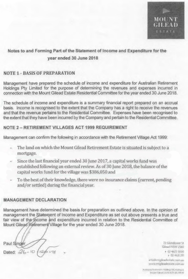 Additional notes forming part of the Income and Expenditure for year ending 2018.