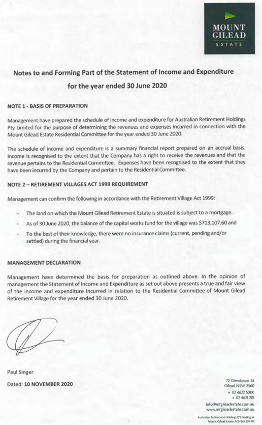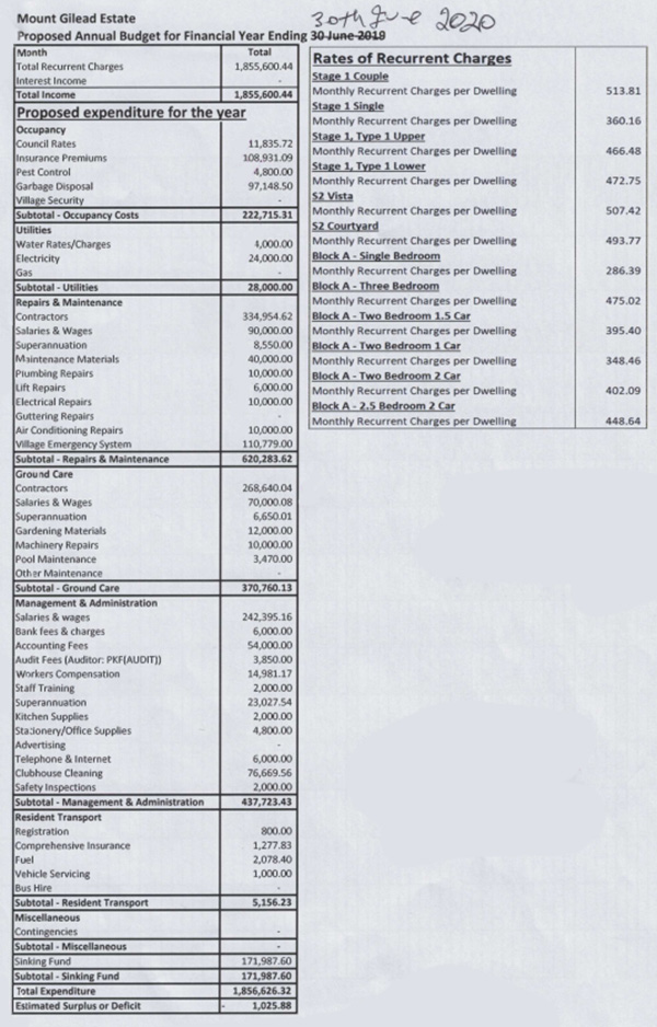 Proposed budget put forward by Management for the year ending 30 June 2020.
