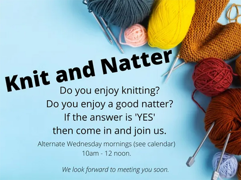 The estate has a social knitting group (knitting and crochet) which meets each Wednesday for individual projects and charity work as well. Everyone is welcome.
