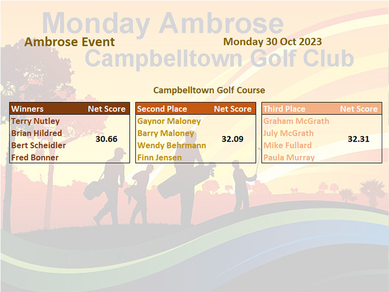 Golf results for the Monday Ambrose event held at Campbelltown Golf Course.