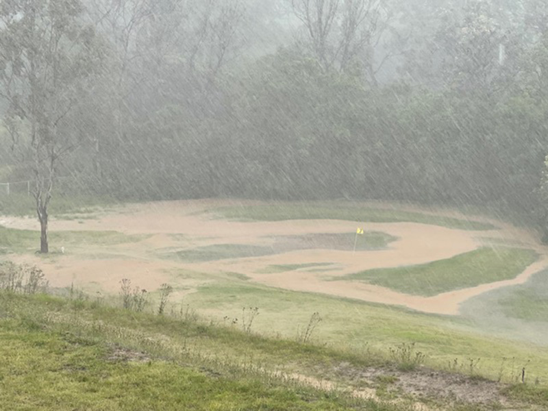 Any decent or prolonged rain sees the water run down the dirt road above hole 7 and then onto the Hole 7 green, carrying with it, dirt and stones, that many times involves a clean up of the green and its surrounds.