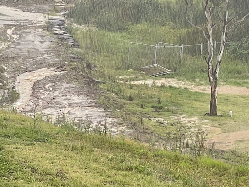 As the operator has left the road above the green sloping towards the 7th Green, and is the lowest point of the road, the water finds a way towards the creek and unfortunately across the 7th green is obviously a path the water chooses to take.